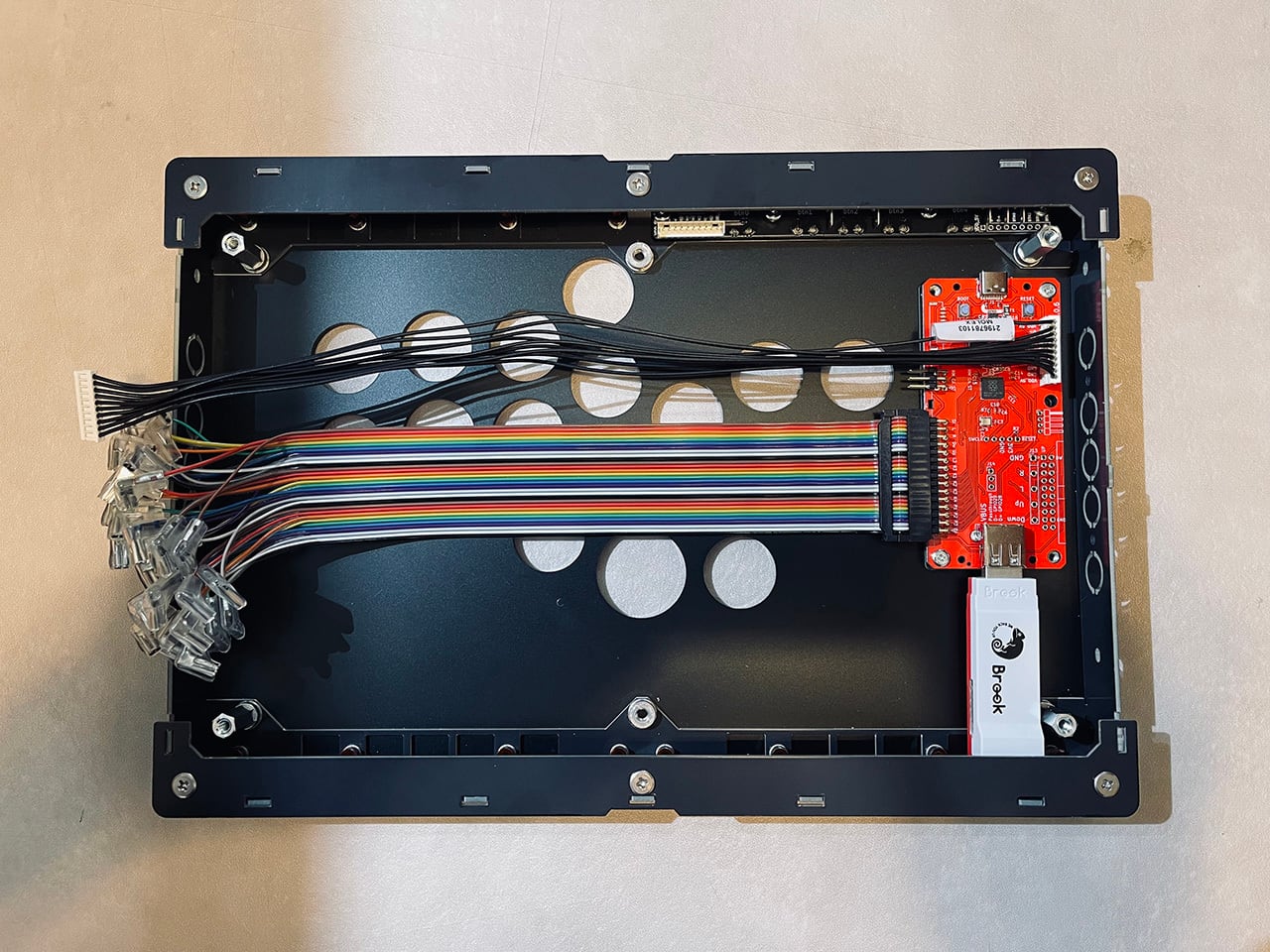 PS5で利用する際は認証機器をメイン基板に取り付ける必要があります(コンバーターとしての接続ではないので遅延は発生しません)。オススメの認証端末はこちら→Brook Wingman FGC Fighting Stick Converter( https://amzn.to/4lOd35G )